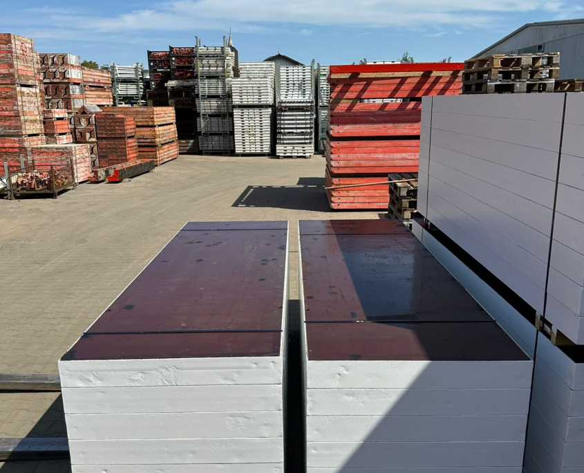 Wir verkaufen 32 x 270x90er Elemente Meva Alustar Wandschalung mit gebrauchter Schalhaut.